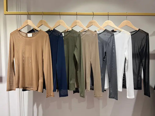 Spitzenbluse, Perlenfarbe und transparenter Stretchstoff