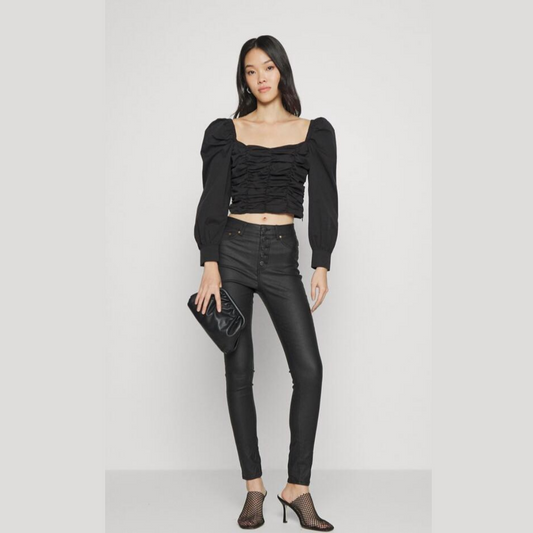 Schwarze Bluse mit langen Puffärmeln, mit Faltendetail