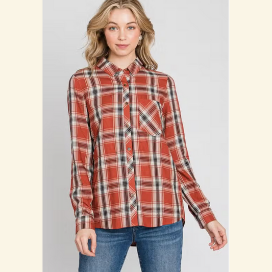 Fannel Rostfarbe – Kariertes Langarmhemd
